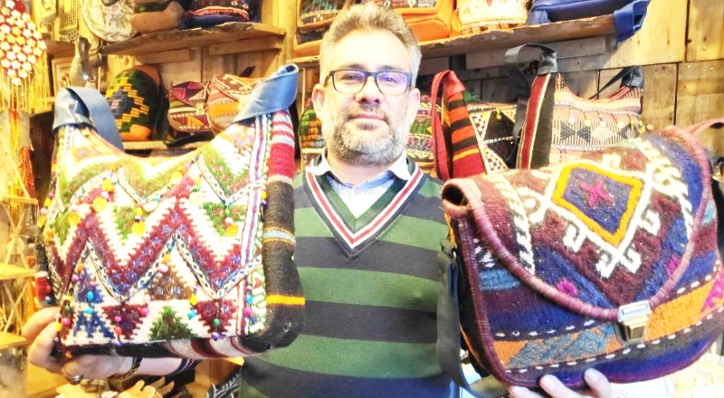 Gaziantep’te yaşayan Ayhan Demirkıran, 5 yıl önce hobi olarak başladığı yırtılmış kilim ve yünlerden yaptığı çantaları 20 ülkeye ihraç ediyor.