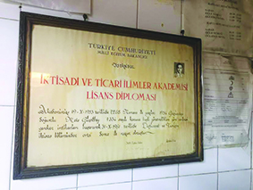 Fotoğraflarda Mete Bey’in kendisini ve diplomasını göreceksiniz. Gaziantep’in kebap şişleri pek özeldir. Kesiti dört köşedir. Böylece kebabın dört tarafını pişirebilirsiniz. Şiş paslanmasın diye krom nikel kaplamaya ilk başladıklarında almıştım. Artık benim şişlerim paslanmıyor. Bugün de onları koyabileceğim krom nikel şiş kabı aldım, silindir şeklinde. Şiş kaplarımın hepsi paslandılar, attım. Biz evde meşe odunu yakıyoruz. Külü toprak için çok faydalıymış, ama elemek gerekirmiş. Külün içerisindeki karbon parçalarını toprağa dökmesek iyiymiş. O nedenle elekçi pazarından şahane bir un eleği aldım, kül eleyeceğim.